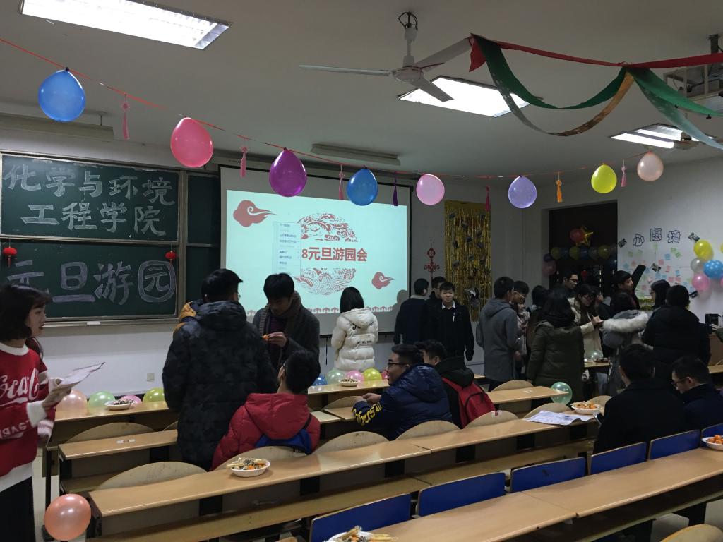 化环学师生携手共庆2018年元旦 作者:发布时间:2018-01-02点击率: 本网讯(通讯员 陈思)12月29日晚,化环学院2018年元旦游园会在流芳校区L1103教室举行。公司党委副书记苏纯华、学院工会主席袁华以及学院员工工作办公室、专业教研室老师们来到同学们中间,师生欢聚一堂共度元旦庆祝新年。 活动现场准备了多彩的节目和各种游戏,师生一道在互动的过程中共话一年来的收获,共迎新年的到来,共同祝愿化环学院全体师生新年新气象、新年新篇章。