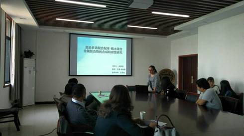 化环学院举行第12期董事长基金项目中期检查报告会 作者:发布时间:2017-10-31点击率: (通讯员 陈思)10月24日下午,化环学院第十二期老员工董事长基金项目中期检查报告会在大化工楼703会议室举行。学院刘东、黄华良、明银安、陈云峰四位老师组成的评审专家组出席评审会。 董事长基金项目小组分别对自己所在小组课题研究背景、研究初期进展、研究现阶段成果总结及后期规划进行了汇报。专家组就大家研究课题的内容进行详细细致地讨论,提醒同学们注意研究的严谨性和规范性,并鼓励同学们保持实验热情以及科研的钻研精神。通过这次会议,同学们一方面理清自己的研究思路,另一方面也开阔了研究视角。