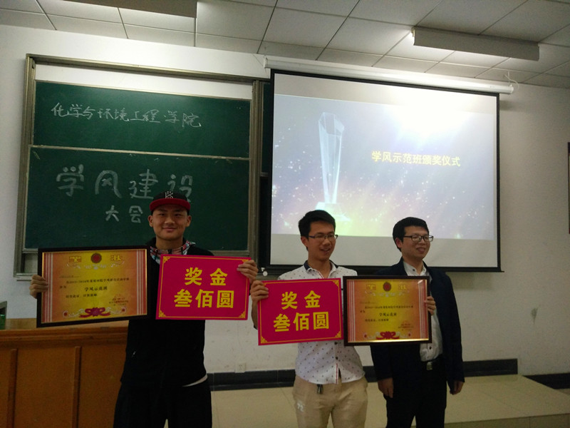 随后,根据网络投票、班级互评、课堂考勤、早晚自习情况和上学期班级考试成绩各项按比例折算相加后,14级环境工程1班、应用化学2班和应用化学1班分获学风建设示范班前三名,15级评比结果为环境工程5班、应用化学1班和理科基地班分获前三名。刘静老师分别为获奖班级颁发证书并给予班费奖励。