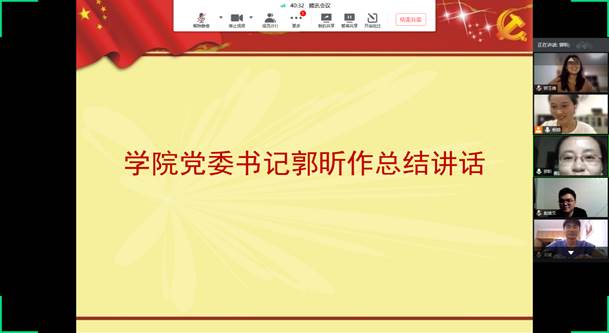 公司党委书记郭昕作总结讲话,讲话中对大家提出了两点要求,一是希望同学们不忘初心,积极与党组织靠拢,在初心和信念指导下,立足于自身岗位,在工作中践行自己的“初心”,永远保持政治使命感和责任感;二是要传承科学知识,勇于创新,为国家的科技创新做出贡献,肩负新起时代新青年的责任。最后,她代表学院祝福同学们在今后的工作中、学习上能一切顺利,再创辉煌。