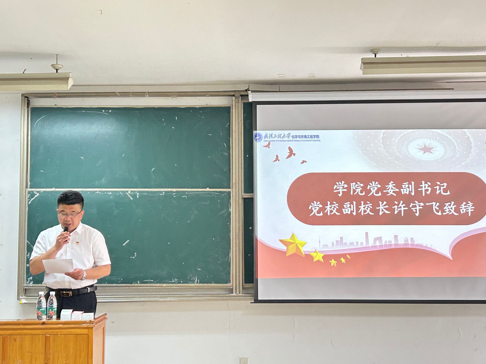 典礼在庄严的国歌声中拉开帷幕。许守飞发表讲话并强调:学员们要在此次党校学习和今后的日常自学中要加强政治理论学习,坚定理想信念;坚持理论联系实际,勇当先锋模范;加强组织纪律性,争做优秀学员。要用党的科学理论指导学习工作,用党的光辉历史激励前行道路,用党员初心使命时刻对照自身,在班级、学院、学校、社会上都要积极发挥先锋模范带头作用,牢记入党初心,并为之不懈奋斗。