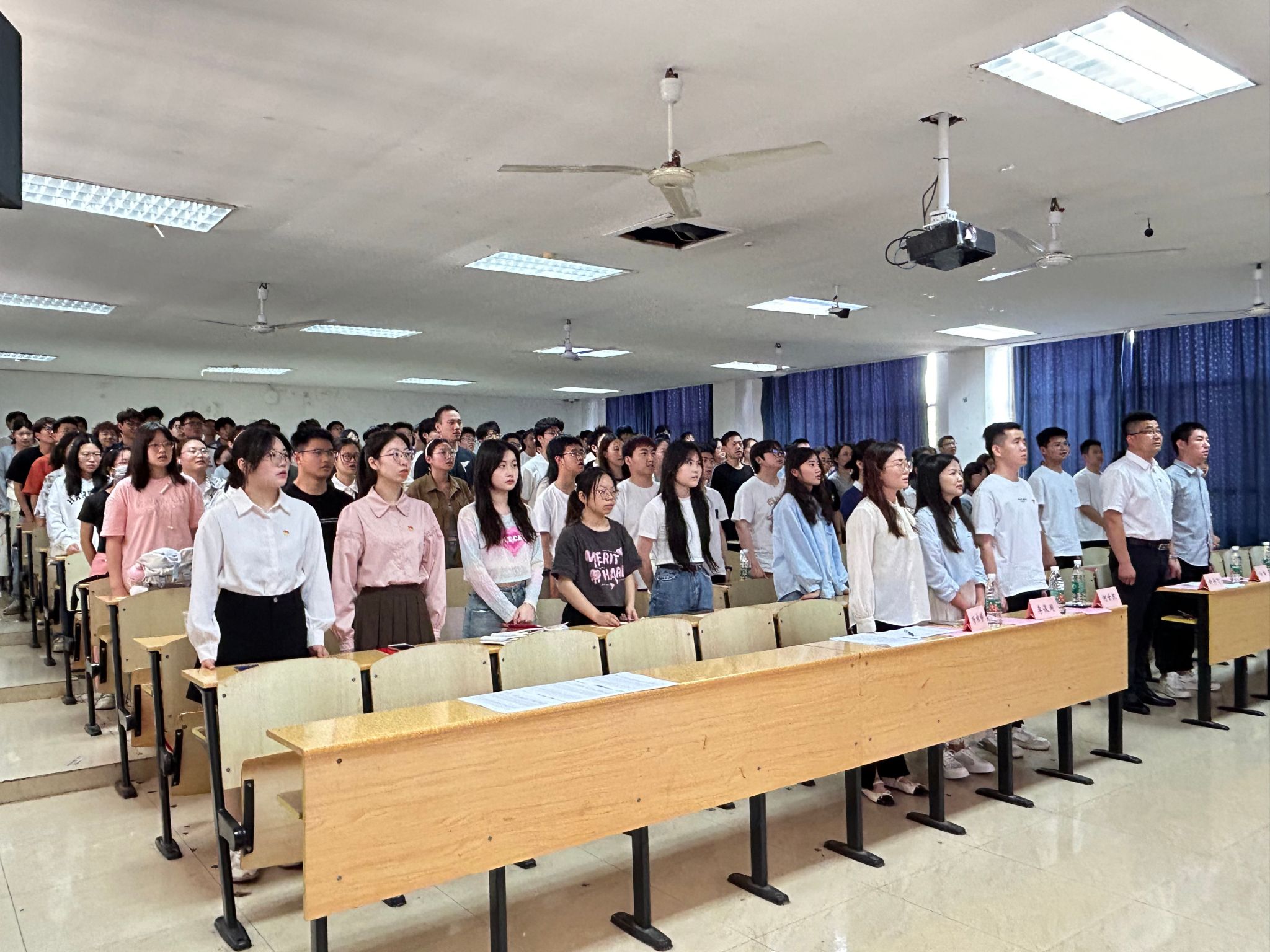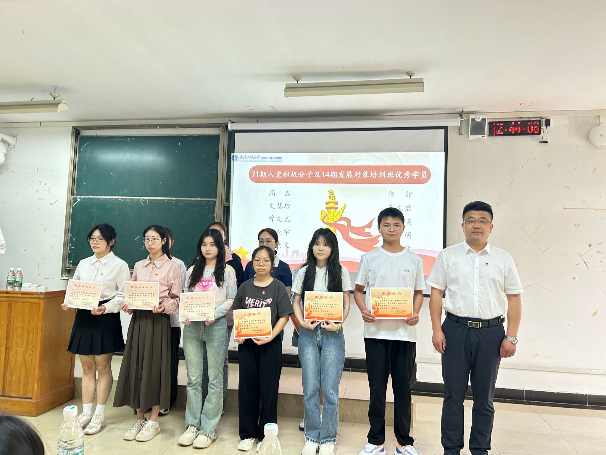 典礼在国际歌的歌声中结束。会后第73期入党积极分子暨第15期发展对象培训班全体学员集中观看《榜样的力量》专题节目。(审稿 张宗良 许守飞)