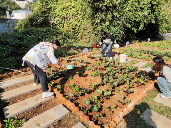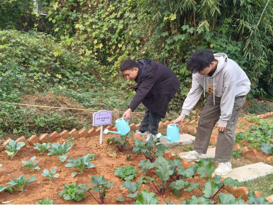 随后,学员们前往学校“千化坊”劳动实践基地,学员们拿起水桶和浇水工具,为种植的蔬菜作物们送上甘霖。他们一边浇水,一边交流着关于农作物生长的知识,感受着劳动带来的喜悦和成就感。