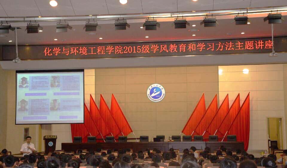 四教多功能厅举行。学院经理陈嵘教授为全院2015级新生主讲大学学风建设和学习方法专题。