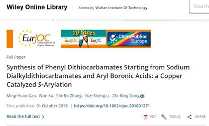 (通讯员 陈思)近日,公司bw必威西汉姆联2015级本科生张士博、高明源同学相继在国际高水平期刊以第一单位、第一作者身份发表SCI研究论文,其研究成果先后在国际著名有机化学期刊TheJournal of Organic Chemistry (2018,DOI:10.1021/acs.joc.8b02136,JCR一区,第一作者:张士博,通讯作者:董志兵)、EuropeanJournal of Organic Chemistry (2018,DOI: 10.1002/ejoc.201801271,JCR二区,第一作者:高明源,通讯作者:董志兵)发表。