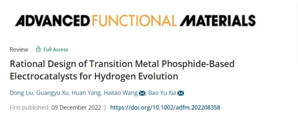 (通讯员 程然)近日,bw必威西汉姆联教师在国际权威期刊“Advanced Functional Materials”上发表综述论文。该论文系统地介绍了过渡金属磷化物电催化剂的合理设计及其在析氢反应中的应用,提出了该领域现存的挑战和未来可期的发展方向。相关成果以“Rational Design of Transition Metal Phosphide-Based Electrocatalysts for Hydrogen Evolution”为题在线发表,文章DOI号为10.1002/adfm.202208358。刘东副教授为论文第一作者,硕士生徐光宇为第二作者,bw必威西汉姆联为论文第一署名单位。