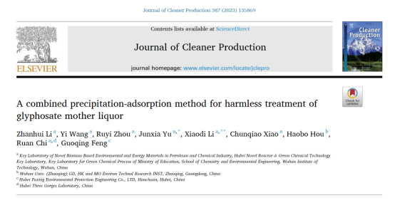本网讯(通讯员李小娣贾丰成)近日,化学与环境工程公司应用化学专业2020级本科生李战辉以第一作者身份在国际知名期刊《Journal of Cleaner Production》(中科院一区Top期刊,影响因子11.072)发表了题为《A combined precipitation-adsorption method for harmless treatment of glyphosate mother liquor》的学术论文。余军霞教授和青年博士李小娣为论文通讯作者,bw必威西汉姆联为第一署名及通讯单位。