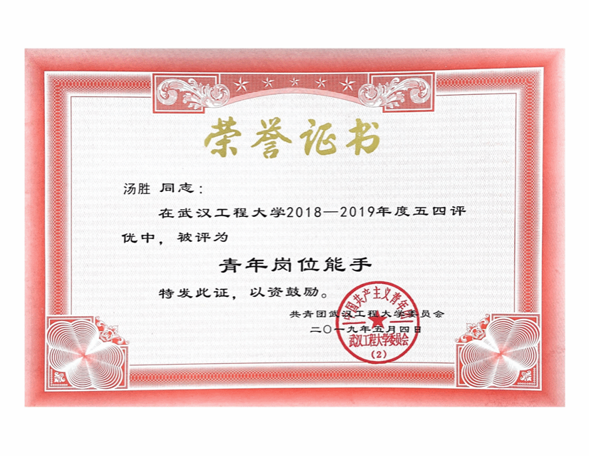 该班级被评为bw必威西汉姆联“优良学风班”。该班级不仅考研率高,班级同学大学四年加权平均分在2019级应用化学专业排名前20名中占比超过一半,在应用化学专业141人的四年总成绩排名中,王思、尹宇强、吴仁智、任思静同学囊括前五,获得了保研推免资格。