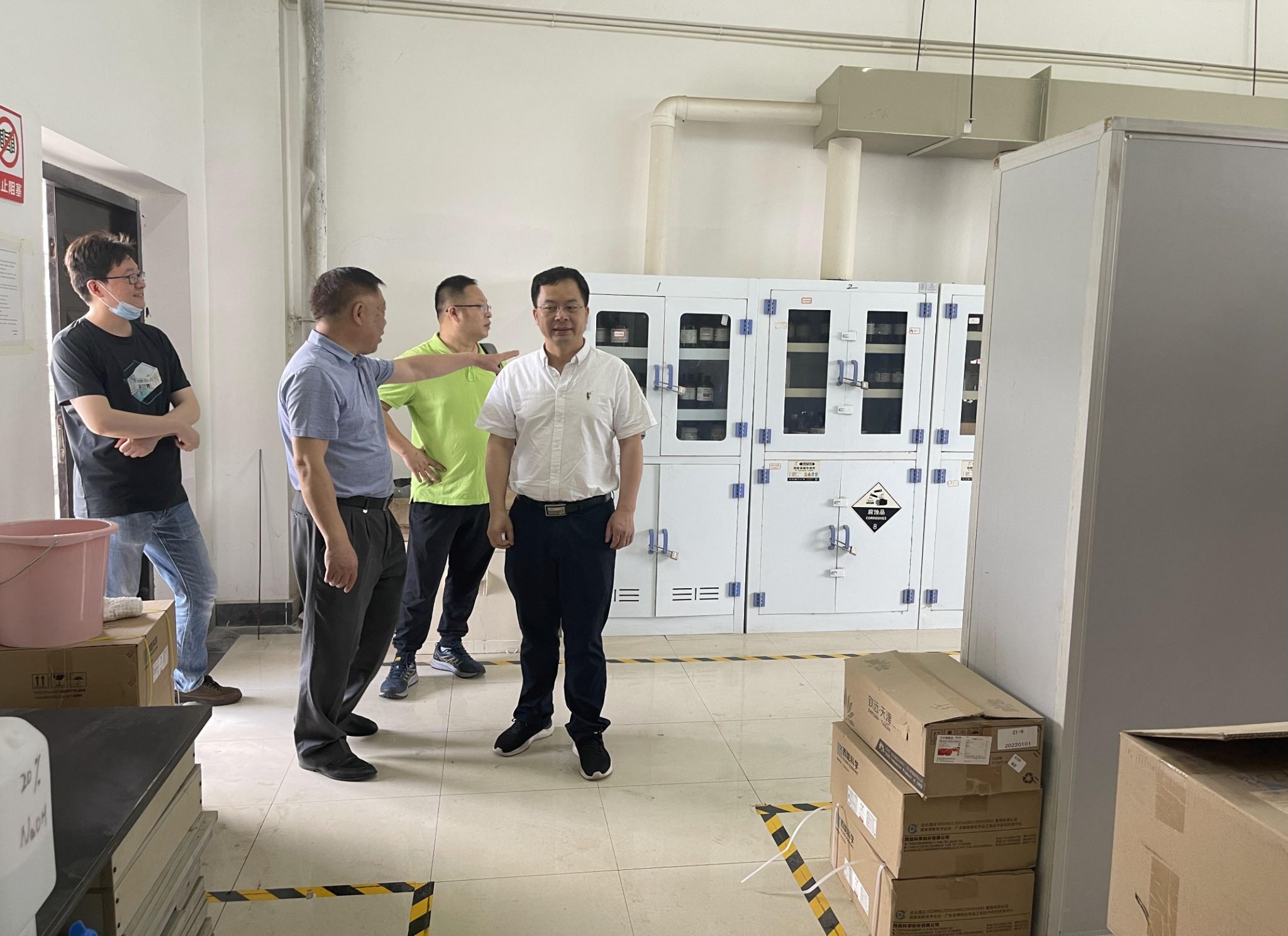 余军霞经理代表学院对来访的武汉纺织大学化工学院的各位领导及老师表示热烈的欢迎。袁华教授详细介绍了公司国家级示范中心自成立以来的基本建设及管理情况,以及示范中心在提升实验教学水平和实践育人能力等方面发挥的重要示范引领作用。纺大化学化工学院朱君江经理一行也对如何组织示范中心做好阶段性总结工作进行了深入探讨。