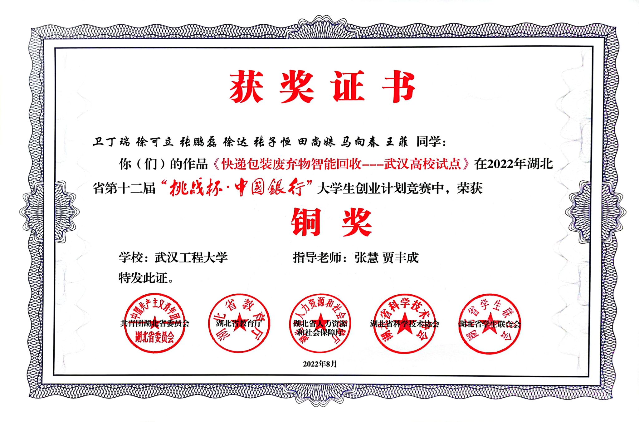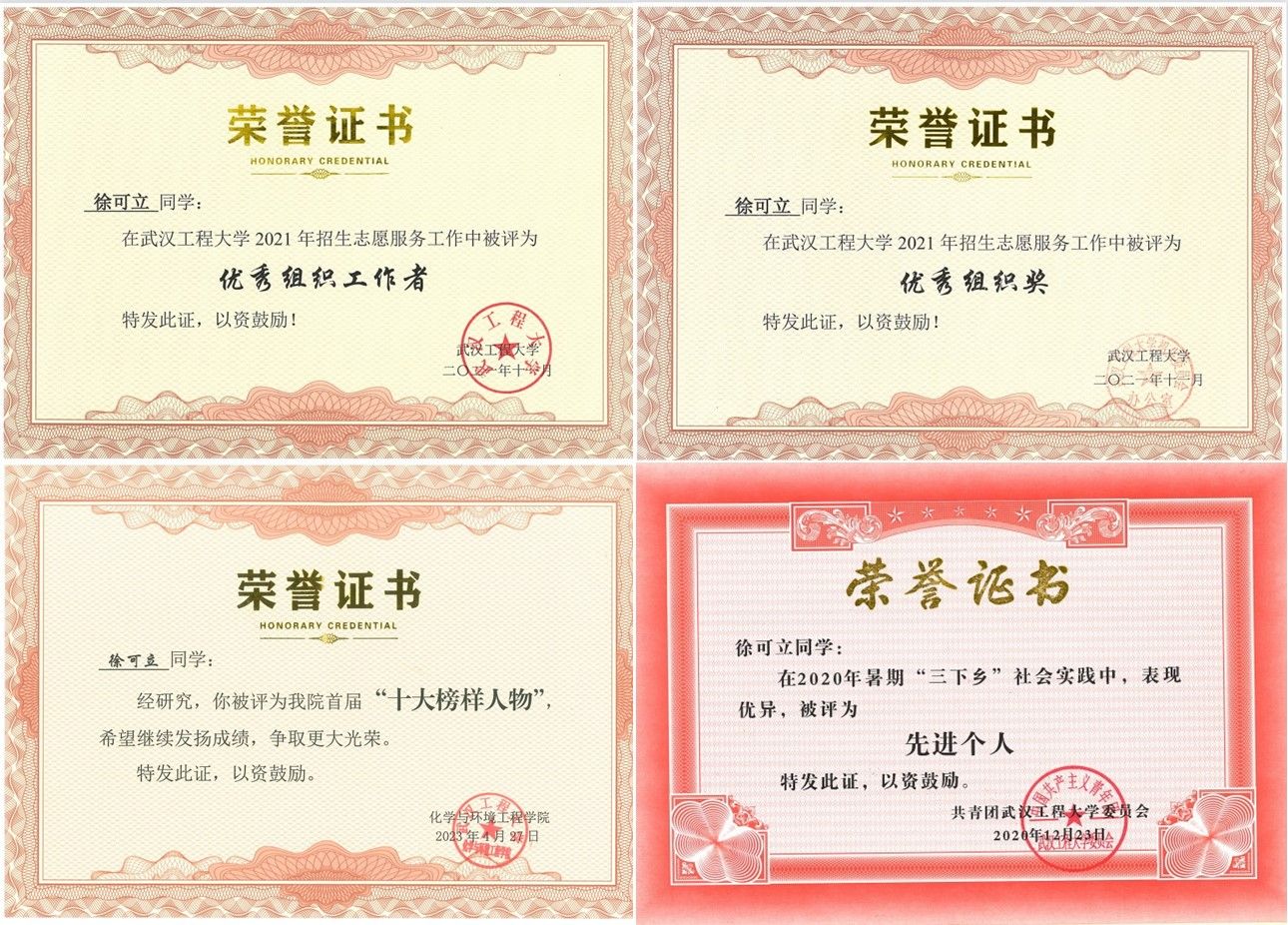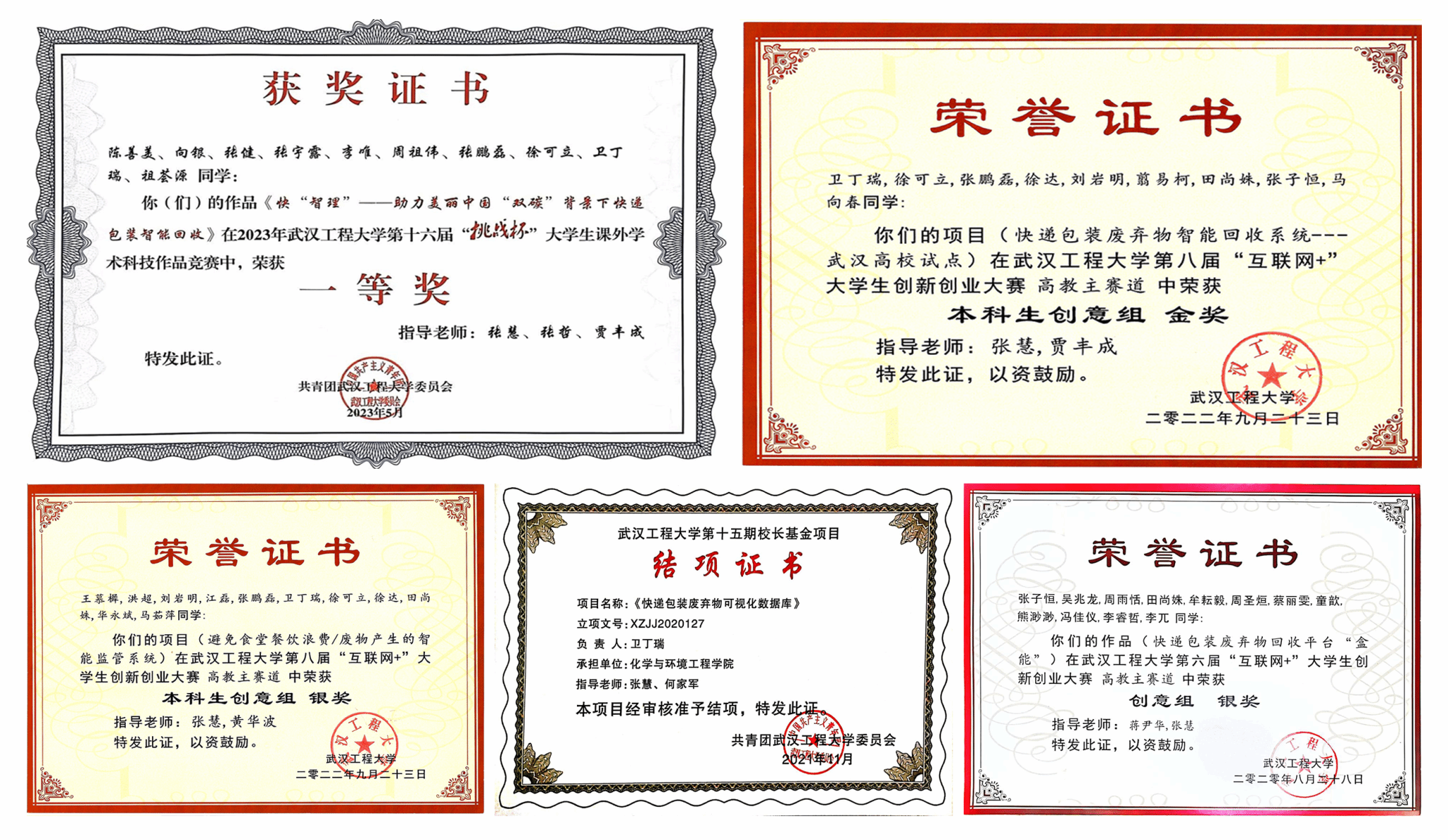 2019级环境工程02班同学乐观上进,理论知识扎实、有较强的科研能力以及创新、创业精神。周晓萌在2021年APM/CM亚太地区老员工数学建模大赛中荣获三等奖,郭培芸在2021年第五届“丝路杯”全国数独大赛全国总决赛中荣获最佳优秀奖和2020年校级每日阅读优秀奖,王菲在2020年湖北省翻译大赛中荣获三等奖。在班主任张慧老师的指导下,一些同学取得了相关创新创业、科研和学科竞赛成果,如卫丁瑞、徐可立、田尚姝、王菲、蔡青青、王慕樨、周晓萌、蔡彬、郭培芸、冯佳仪、张文霖、赵小玉等17名同学获批2项国家老员工创新创业项目,董事长基金项目2项,以及互联网+项目获奖和挑战杯竞赛获奖7项(包括省奖1项,校级一等2项),以及参与发表论文3篇、申请专利10项,授权专利3项和软著2项。其中,卫丁瑞同学作为队长获批国家级老员工创新创业项目2项,作为法人注册公司1个,董事长基金结题1项,作为队长获省级挑战杯1项、校级金奖和铜奖共2项,参与发表SCI论文2篇(影响因子大于10的论文2篇)和授权专利2项,第一著作权人授权软著1项。