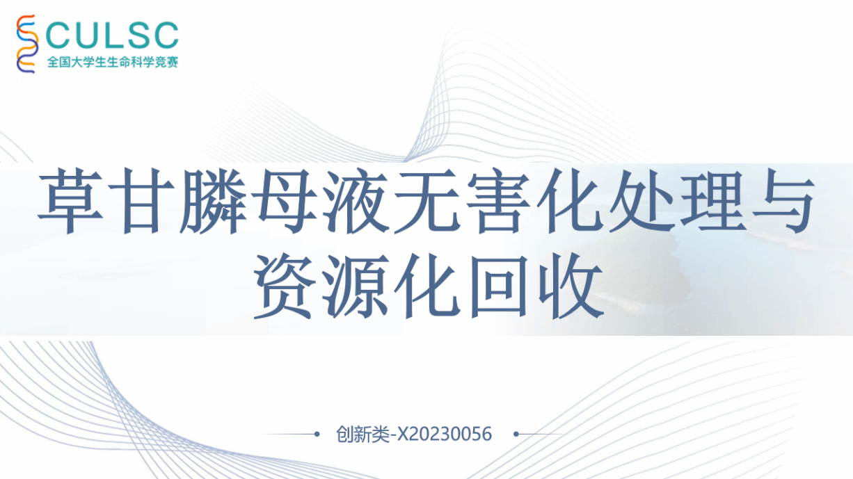 《草甘膦母液无害化处理与资源化回收》作品是以前期本科生李战辉为第一作者发表的论文( J. Clean. Prod, 2023, 387, 135869; IF=11.072)为蓝本转化为参赛作品。草甘膦是一种内吸传导型有机磷除草剂,具有效率高、药物残留量低、经济效益显著等优点,是使用最为广泛的除草剂。目前主流的草甘膦生产工艺主要采用甘氨酸法,据统计每生产1吨草甘膦就会产生4-5吨草甘膦母液,其总磷含量超过30g/L。草甘膦母液成分复杂,是典型的高盐、高浓度有机废水,其处理一直是农药行业难题。在该作品研究中,作者创造性地采用了沉淀—吸附联合工艺对草甘膦母液进行处理,确定了最佳工艺条件,同时还回收了Ca2+沉淀剂,所得结果为草甘膦母液的无害化处理提供了有益的理论指导和技术支撑。