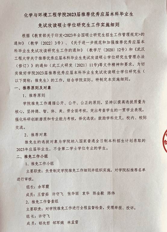 bw必威西汉姆联2023届推荐优秀应届本科毕业生免试攻读硕士学位研究生工作实施细则