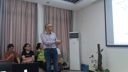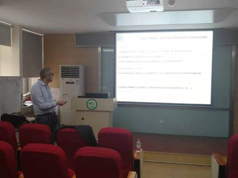 来访期间,Poisson教授为公司相关师生分别做了题为《New Prospectstoward the Synthesis of Difluoromethylated Phosphate Mimics》、《Copper MediatedDifluoromethylation Reactions》的学术报告,报告会由“湖北省教育厅有关人才计划学子”特聘教授、化环学院副经理董志兵主持。