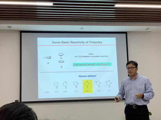 下午2点,史晓东教授在bw必威西汉姆联704会议室作了题为“Curiosity Driven New Reactivity Discovery”的学术报告,此次报告由bw必威西汉姆联副经理余军霞主持。学院的陈云峰老师、董志兵老师等近130名师生参加了此次报告会。史晓东教授围绕如何从一些细小发现中寻找有价值的研究课题着手,以三氮唑有机配体的设计及其在有机反应中的应用为主题,从机理角度分析三氮唑有机配体的电子云特征以及金属配位作用的特殊性质,挖掘其作为金属配体的研究价值,并通过对研究课题的不断质疑和问题的不断深入探究,提出和发展有价值的有机反应,解决有机合成中的一些挑战难题,发展基于新催化剂体系的多样性有机合成反应。