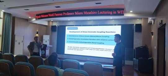 来访期间,Miura教授为公司师生分别做了题为《Development of Direct Aromatic Coupling Reactions》以及《Palladium-catalyzed C–H Arylation of Benzophospholes with Aryl Halides 》的学术报告,通过“芳烃-烯/炔烃直接偶联的发展”、“与乙烯碳的脱氢环化反应”和“分子内脱氢双芳基偶联”三个方面对其课题组在近年的工作进行了详细的介绍。由于多环杂芳基骨架广泛存在于许多天然化合物和常见的官能分子中。因此,发展新型高效的构建稠合环骨架的合成方法已成为化学家们的研究热点,Miura教授近些年发展的过渡金属催化的C-H活化策略已成为合成杂环及复杂天然产物的有效工具。学术报告结束后,Miura教授回答了在场师生提出的学术问题,并与现场师生进行了深入的交流,Miura教授也参观了化环学院部分老师的科研实验室。