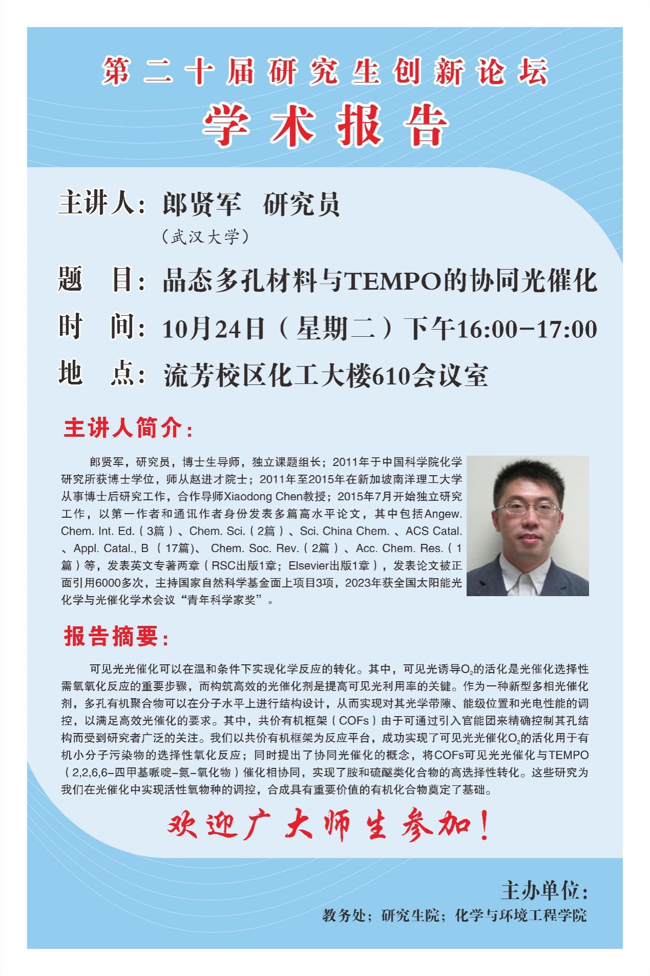 【第二十届研究生创新论坛】晶态多孔材料与TEMPO的协同光催化