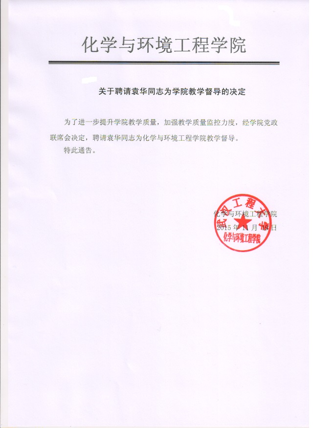 关于聘请袁华同志为学院教学督导的决定