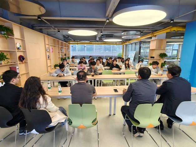 在交流互动环节,与会师生围绕课程安排、导师选择、科研方向、考研升学、职业规划等热点问题展开了深入讨论。现场气氛热烈,这次座谈会使员工更加明确自身定位与发展路径,增强了对专业学习和科研探索的信心与动力。