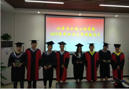 陈金毅经理、王营茹副经理、应用化学教研室主任程新建老师、环境工程与环境监察教研室关洪亮老师为毕业生逐一授位。